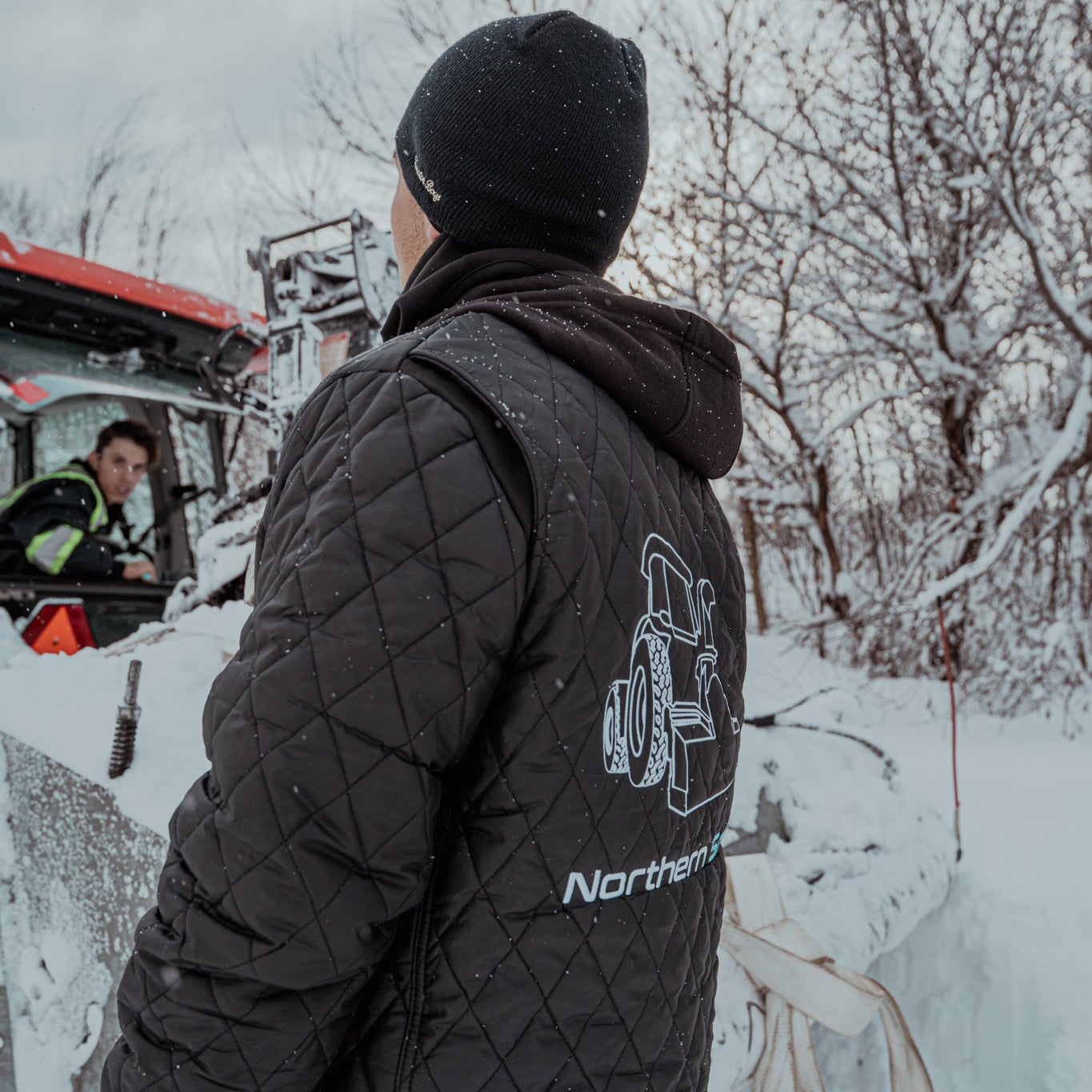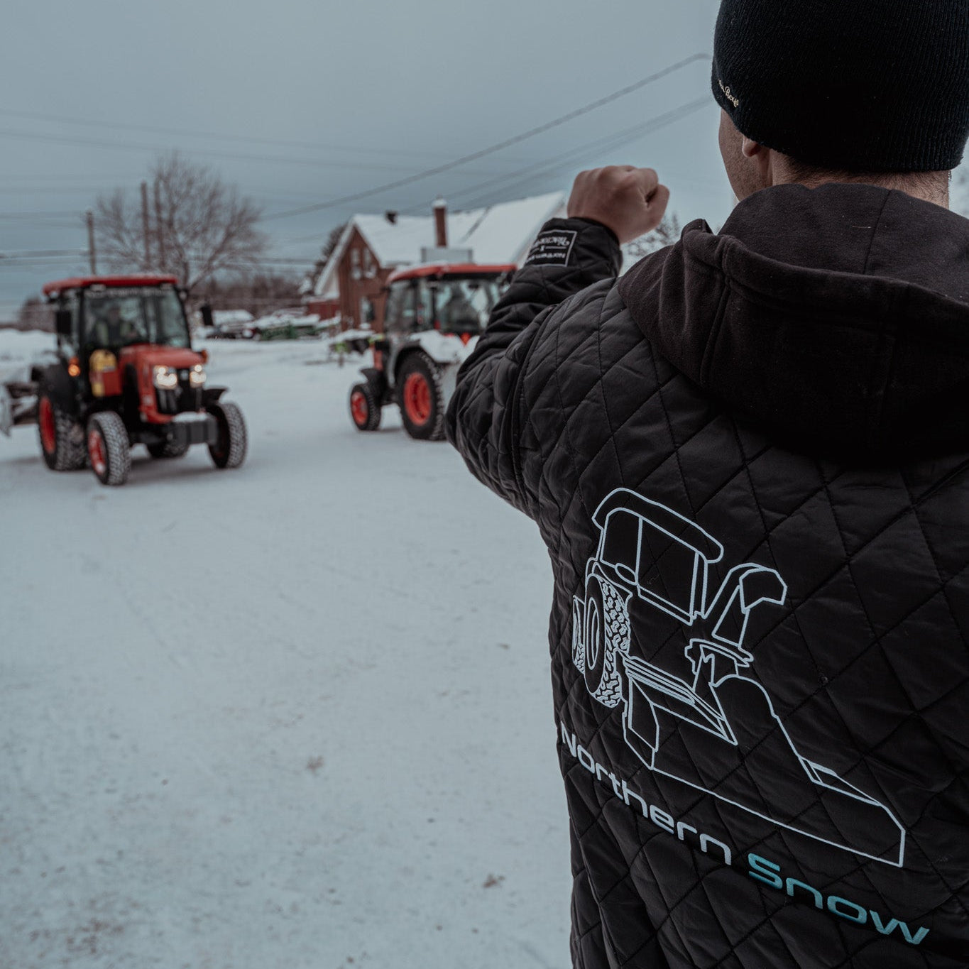 Finished with subtle Northern Snow × Tractor Boys embroidery
